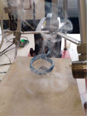 The characterization of materials in situations similar to the real one is essential, since the behavior and consumption are radically modified by the effect of variables such as the micrometric drop size, the impact speed of the drops on the surface or the influence of forced convection on the heating of materials.