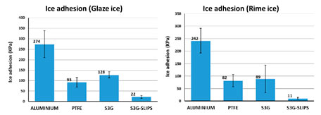 Comparing the coating with a material considered to have low adherence to ice, PTFE, the solution reached in MAI-TAI obtains 4 times better results.